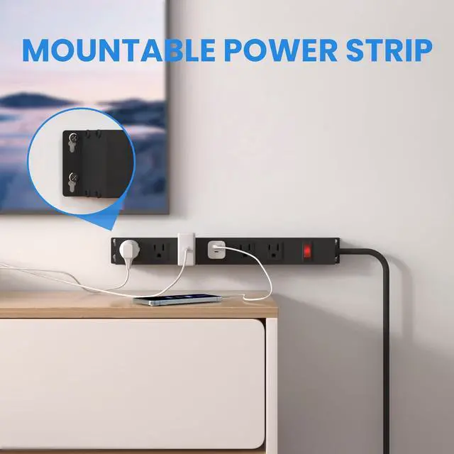 WALL MOUNTED DESIGN: Durable metal power strip has mounting holes on the top and bottom, which can be installed under the table, table leg, wall and other places arbitrarily. It is convenient and can be used for a long time.