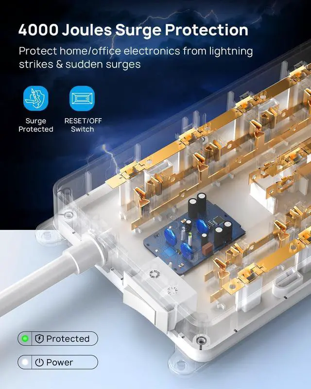 Safety CertifiedThis power strip with usb ports is ETL certified and combines 4000J surge protection, overload protection, overcurrent protection, short circuit protection, and a 1382 fireproof shell to provide comprehensive safety protection for your tablet, TV, mobile phone, and other electronic devices against potentially damaging power disturbances