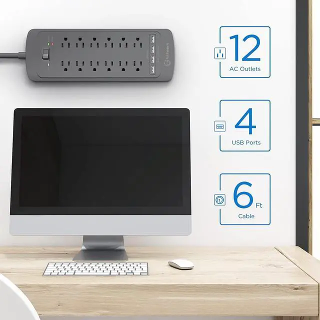 All-Round Protection - Witeem 4360 joules surge protector with overload protection protect your devices against power spikes and fluctuations. The fire-retardant casing which is able to stand temperature up to 1382 (750) together with a overload protection system ensure the peace of mind for you and your family. The power stripe is ETL Listed and FCC Certificated.