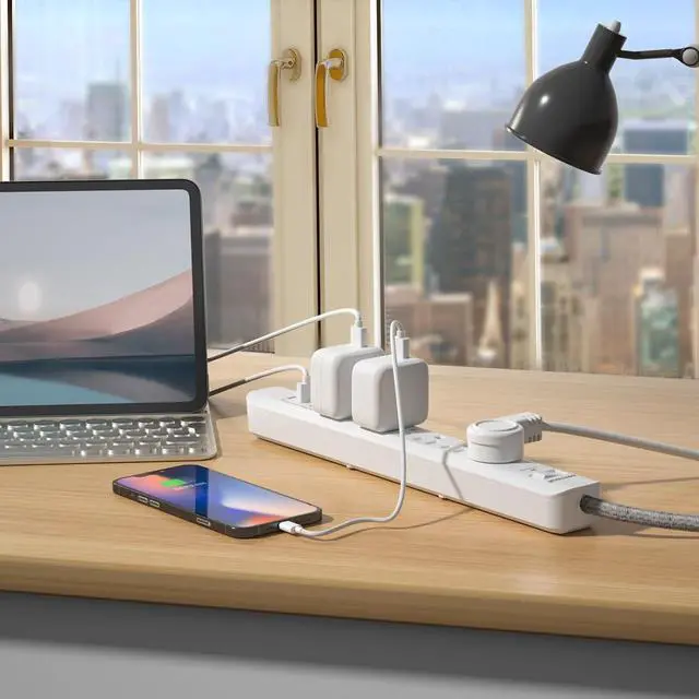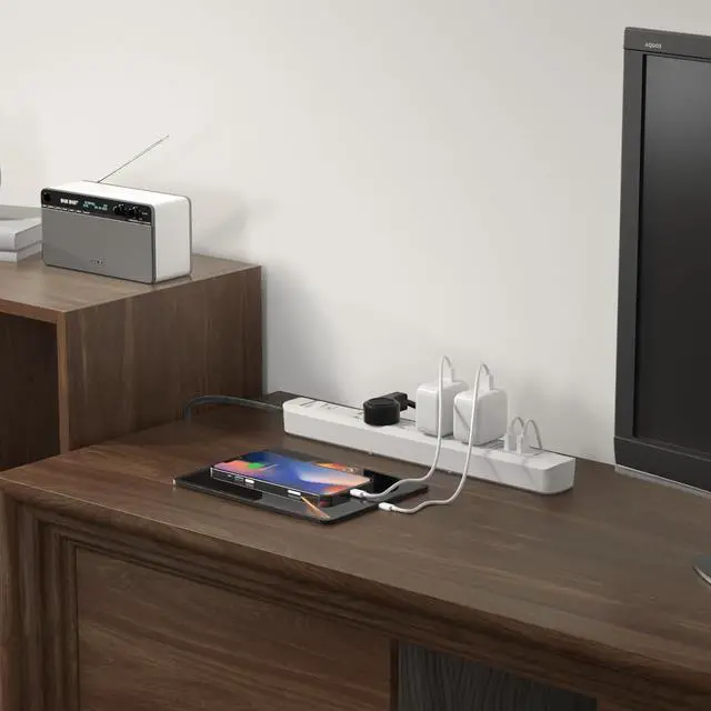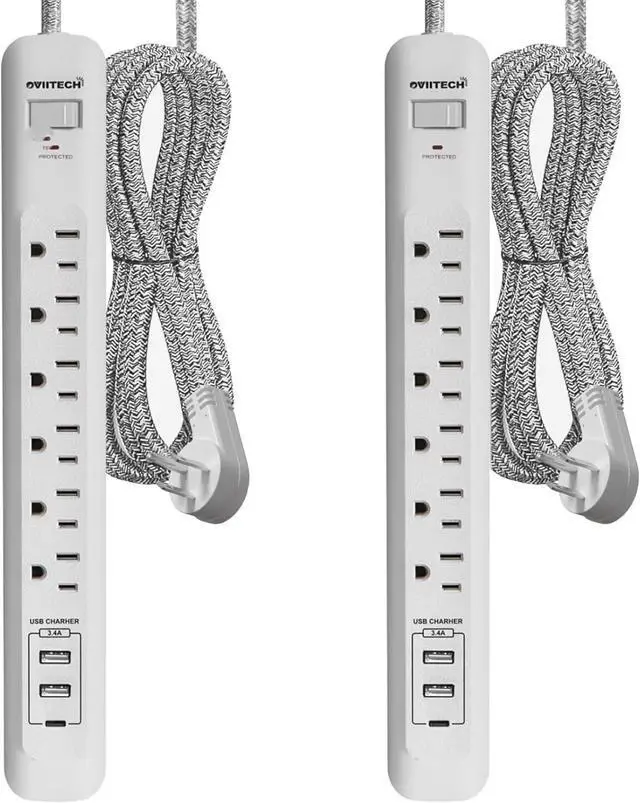 USB Ports: 6AC outlets and 3 USB ports include one USB-C port 2 USB-A ports (5V/ 3.4A ), 10 feet extension cord (14AWG/3C) SJT), surge protection indicator light and overload protection switch can protect electrical equipment from damage due to spikes and fluctuations