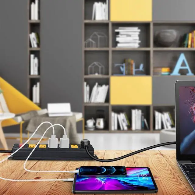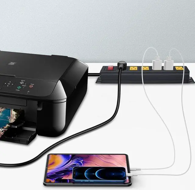 6 Outlet Power StripFeatures 6 AC outlets, and comes with a 6 FT 16AWG/3C power cord, this metal power strip can charge up to 6 devices simultaneously. It is compatible with multiple devices, such as your laptop, tablet, smartphone, E-reader, printer, scanner, router, camera, lamp or home electronics. Maximum load 15A / 125V / 1875W / 60Hz.