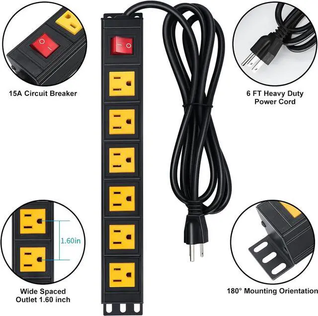 Wide Spaced Power StripThe center-to-center distance between AC outlets is 1.61 inches, perfect for accommodating bulky plugs without blocking each other. The wall mount power strip is ideal for home, office, garage, school, workshop, shop, game room, studio, workbench, factory, warehouse, etc.