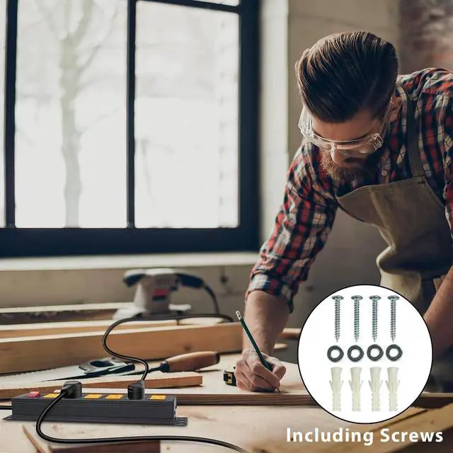 Wall Mount Power StripThis 6 outlet metal power strip comes with 4 mounting screws, making it easy to install horizontally, vertically, or under your desk. It' s perfect for any space where you need to power your appliances.