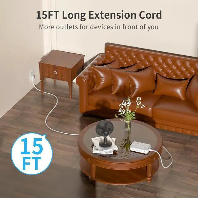 15 ft Long Extension Cord For AnywhereAre you still worried that the power cord is not long enough? NTONPOWER 15 ft power strip to the white extension cord provides extra outlets at optimal reach in home and office spaces.