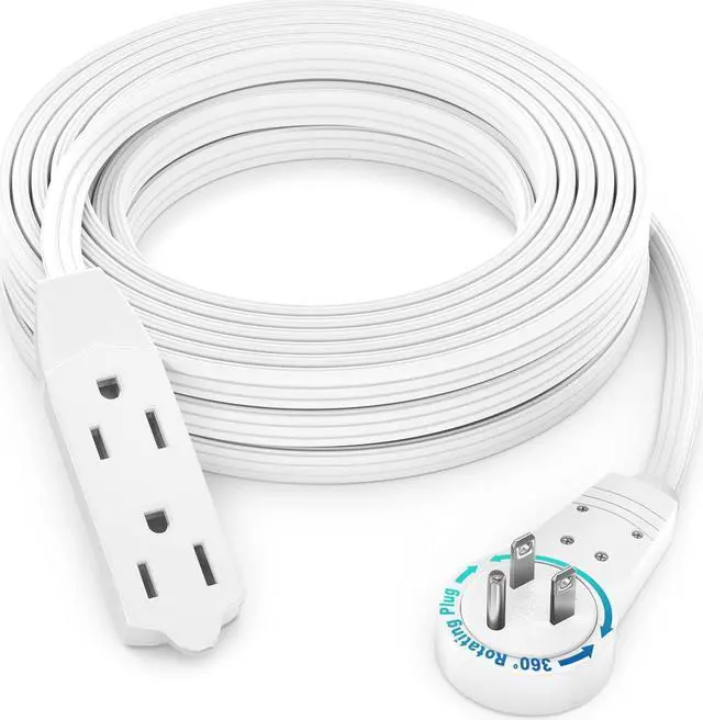 ROTATING PLUG: The Maximm extension cord is top quality featuring a 360° degree rotating flat supply plug with 3 female outlet connectors for additional power.