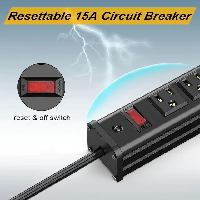 HEAVY DUTY POWER STRIP WITH SWITCH: With 15Amp circuit breaker power switch, when power is on letting you know if the circuit breaker has tripped. In the event of an overload the circuit breaker will trip protecting your devices and reducing fire risk.