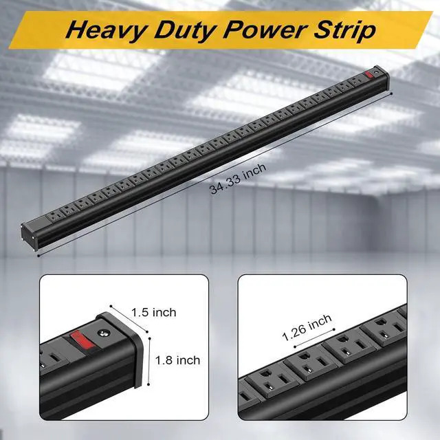 METAL POWER STRIP: The whole structure is made of aluminum alloy, perfect for workshops, enclosed garages, offices and schools.