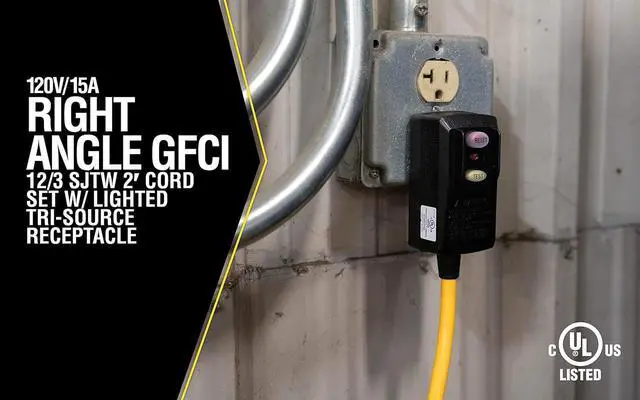 12/3 SJTW 2Äô Right Angle GFCI Cord Set with Lighted Tri-Source Receptacle
