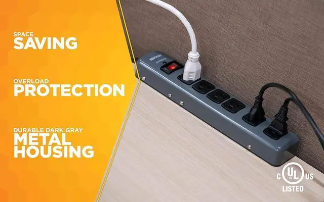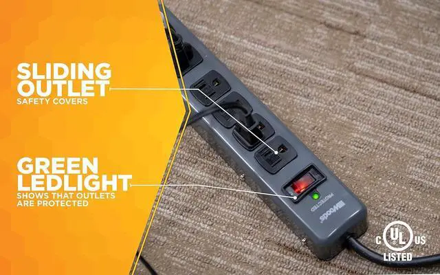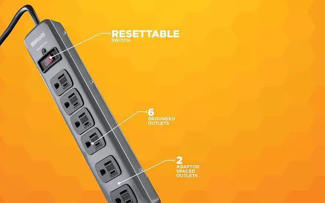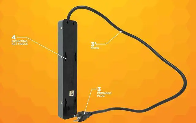 900 JOULES of SAFETY provide protection against electrical overloadsBuilt-in circuit breaker switch keeps your home SAFE and protects against electrical overloadsLIGHTED RESETABLE SWITCH shines red to let you know that your power strip is on and ready to useGreen LED light shines when outlets are protected4 MOUNTING KEY HOLES on the back of the power strip allow you to hang or mount to bring power off the floor$100; 000 connected equipmentUL and CUL listed
