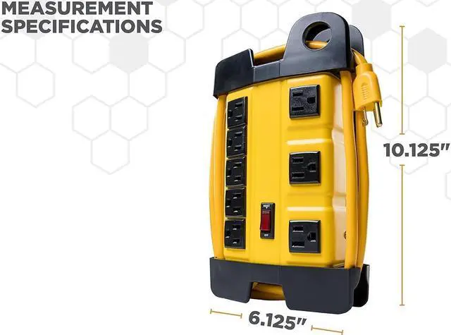 BUILT IN 15 AMP CIRCUIT BREAKER for over load protection; limits excess current to your electrical devices to protect them from damageLIGHTED SWITCH to show when power block is on and outlets are ready to useTWO