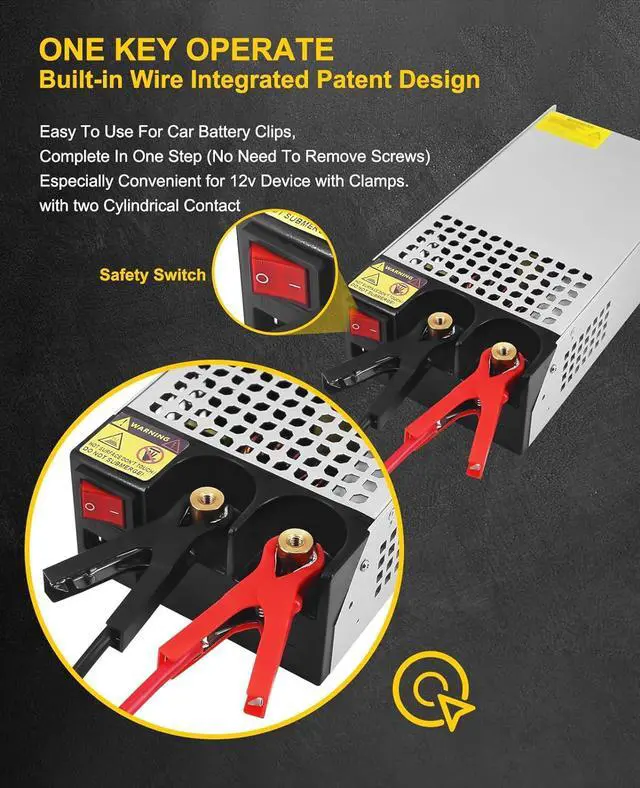 Plug-and-Play Setup with All-Inclusive Kit. Eagwell ac to dc converter includes UL-listed power cord, 12v power supply 1000w, wire lugs, metal clips, and screwseverything you need for clamp-style device connections. Dual wiring options (direct wire + terminal clamps) fit DIY projects, RVs, or industrial setups. No extra tools required