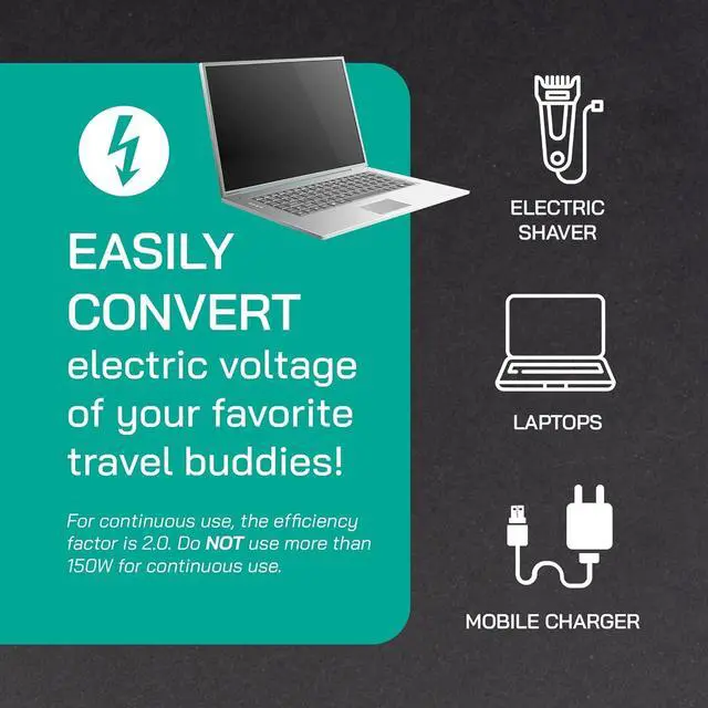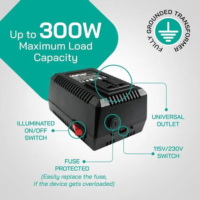 Thermal Fuse Protection: This travel voltage converter has a maximum capacity of up to 300 watts, protects the converter from overheating overload & ensuring your devices receive adequate power while being protected by thermal fuse technology.