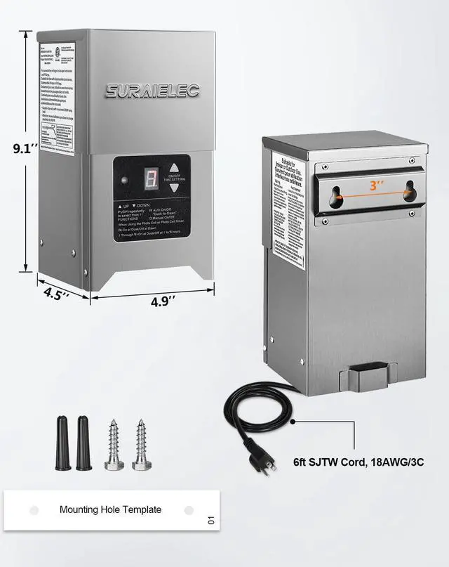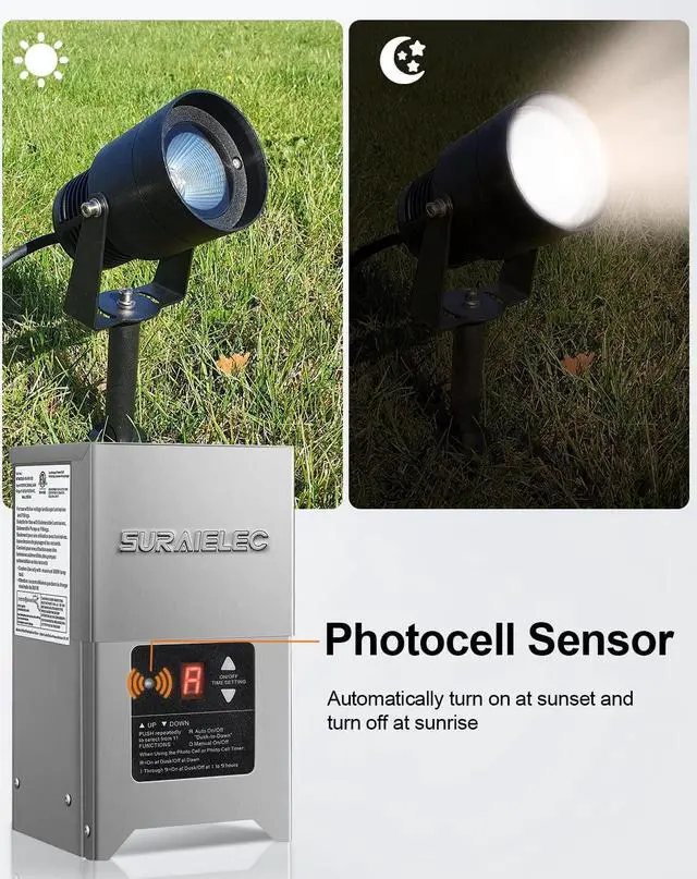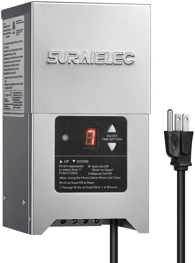 [Photocell Sensor & Timer]: This low voltage transformer features a dusk-to-dawn sensor with a countdown timer; set your landscape lights transformer to turn off after one to nine hours for added convenience