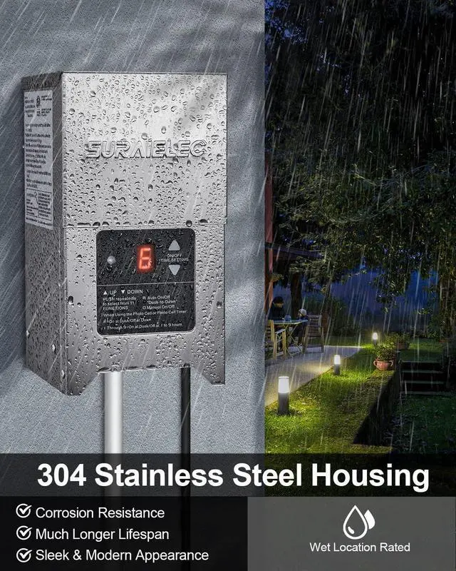 [Weatherproof & Durable]: The 304 stainless steel landscape lighting transformer resists corrosion; wet location rated for outdoor use in any weather