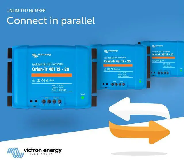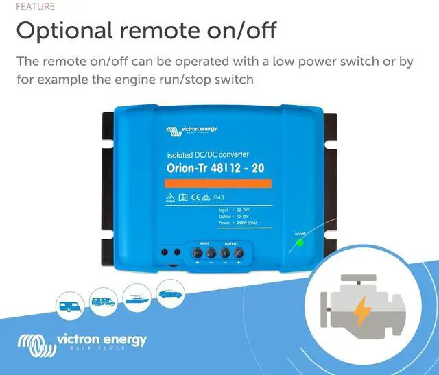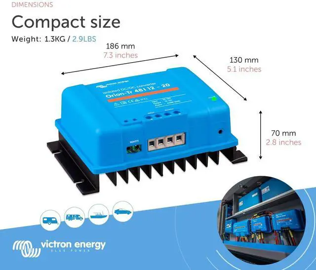 Flexible Power Solutions: The Victron Energy Orion-Tr DC to DC Converters are available in various configurations, including different voltage, amperage, and wattage options, as well as isolated and non-isolated to suit a wide range of applications.