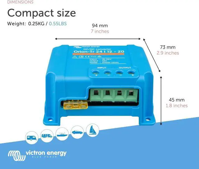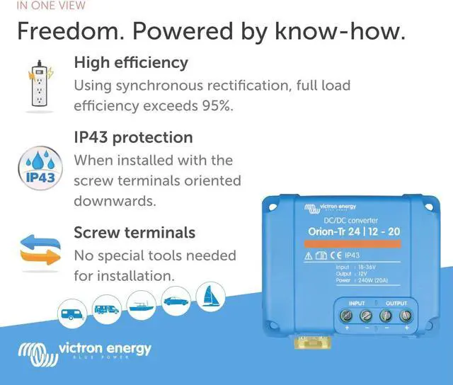Easy Installation: The Victron DC to DC Converters are equipped with screw terminals, these converters allow for easy installation without the need for special tools.