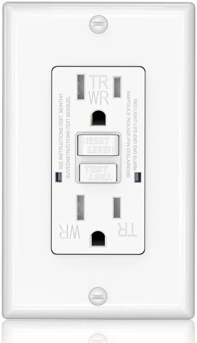 Self Test: The GFI electrical outlet performs a self-test (red light blinks once) every 20 seconds, and in the event of a ground fault, the socket quickly cuts off the power to prevent you from being electrocuted