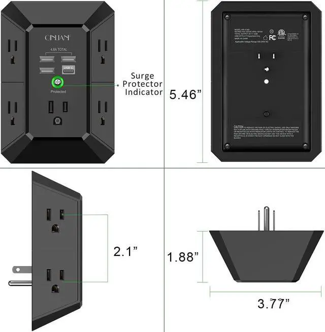 Wide space - 5 AC outlets built-in 1680 Joules surge protector with 2.1 inches long space in between, larger than standard 1.5 -inch socket. Larger spacing makes it easier to use for all kinds of equipment.