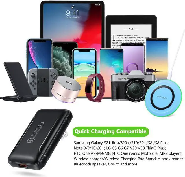 [Universal Compatibility]: The power adapter is compatible with fast charging 3.0 supported devices such as iPhone 15/iPhone 15 Plus/iPhone 15 Pro/iPhone 15 Pro Max/14/13/12 /11 /XS/XR; Samsung Galaxy S10 / S10 Plus / S9 / S9 Plus/ S8 / S8 Plus / S7 / S7 Edge / S7 Plus / S6 / S6 Edge / S6 Plus / Note 10+ / Note 9 / Note 8; it can also charge other USB powered devices such as iPhone, iPad, Google Pixel, LG, wireless charger, tablet and More, can be used at home, office, hotel and other places.