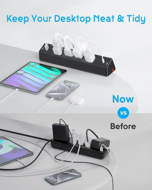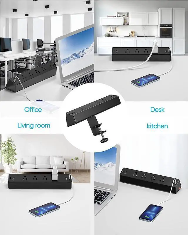 Keep Your Desktop Neat & TidyWith all-in-one Multifunctional design, this multi outlet Clamp Power Strip takes little desktop space to make your home or office neat and tidy.