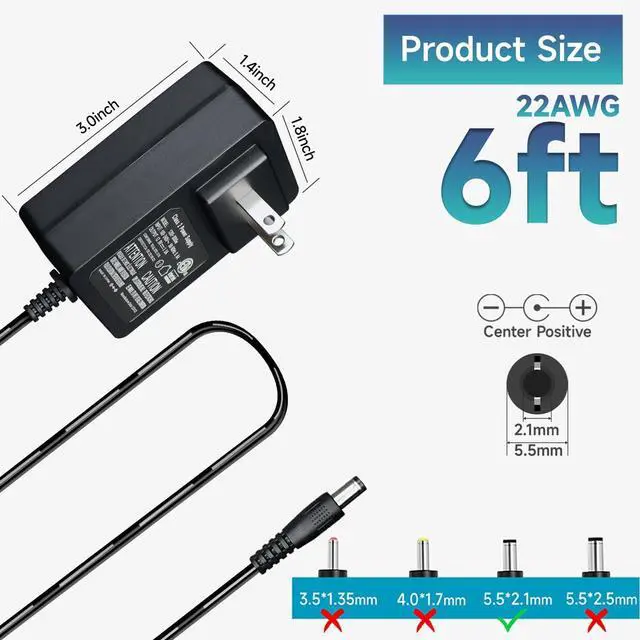 Wide ApplicationCompatible with DC 12V devices that draw less than 3A, such as 100mA, 0.1A, 200mA, 0.2A, 300mA, 0.3A, 500mA, 0.5A, 600mA, 0.6A, 700mA, 0.7A, 800mA, 0.8A, 900mA, 0.9A, 1000mA, 1.0A, 1500mA, 1.5A, 2000mA, 2A, 2500mA, 2.5A, 3000mA, 3.0A. Ideal for powering a wide range of 12V DC items, such as LED Strip Light, CCTV Camera, Router, BT Speaker, GPS, Webcam, Scanner, and More 12V Household Electronics. It is also a good replacement for your broken one.