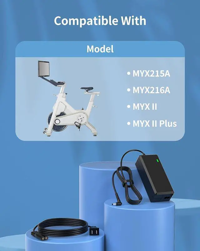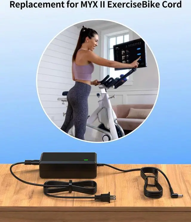 Extended Cable Length: 9.8 ft long power cord replacement for myx fitness bike, it can easily load the cycling bike when charging, gives you the flexibility you need for greater convenience