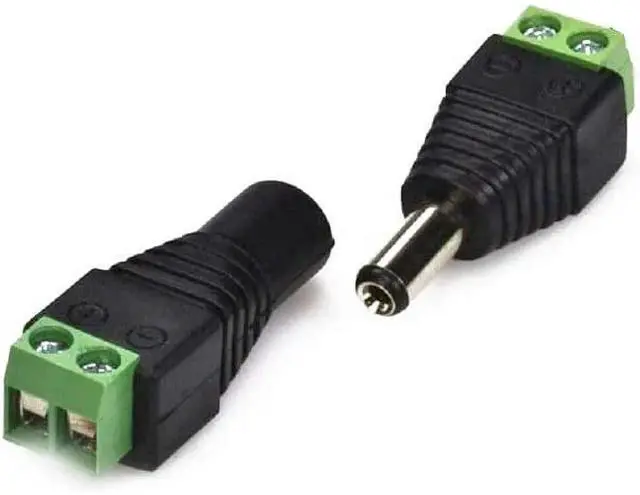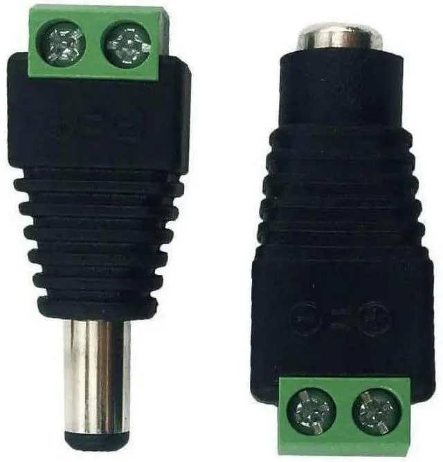 The connector is made of Electric Parts and PVC Plastic, which is fire resistant, dampproof. And this material makes it transport current quickly. It's solid and durable.This 2.5mm x 5.5mm Power Plug features one power connector end DC plug male to another end terminal for CCTV camera connected.