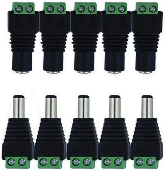 5 Set CCTV Cameras 2.5mm x 5.5mm Female Male DC Power Plug Adapterr