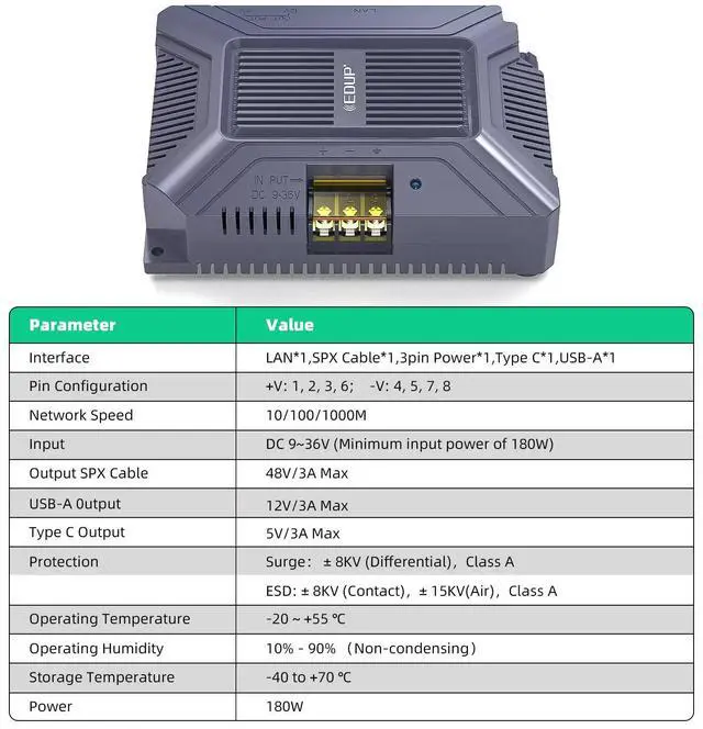 Interface:LAN*1,SPX Cable*1,3pin Power*1,Type C*1,USB-A*1