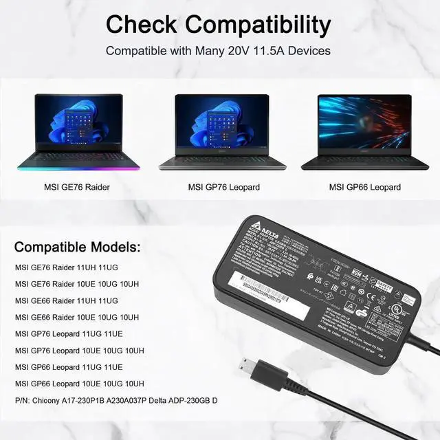 Compatible with P/N: Chicony A17-230P1B A230A037P