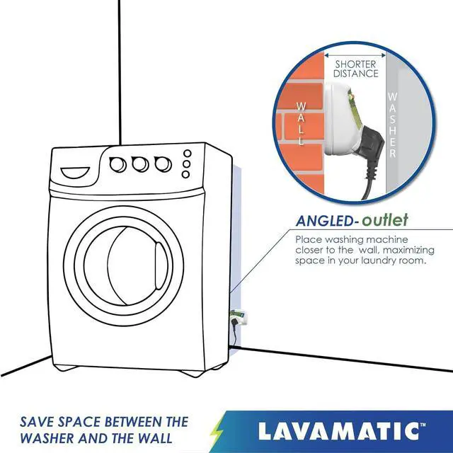 Shorter distance between washing machine and the wall: The angled outlet is designed to place the washer closer to the wall, saving space.