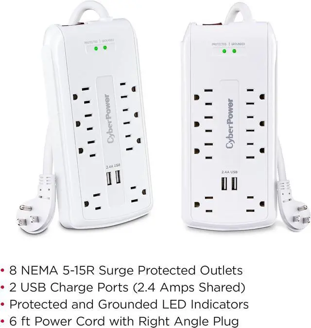 OUTLETS: Provide 3000 joules of surge protection for home and office computers, electronics, and home theater equipment;