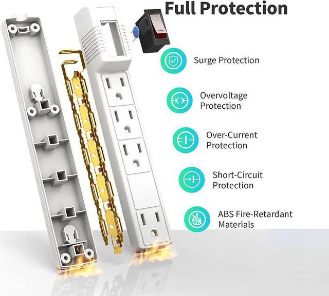 Safety and Certificate ETL listed: This power strip has overload protection, short-circuit protection, over-current protection, over-voltage protection, and overheating protection. Intelligent circuitry with built-in voltage sensing detects current power, When the rated power is exceeded, the switch will automatically shut off to keep your device safe.
