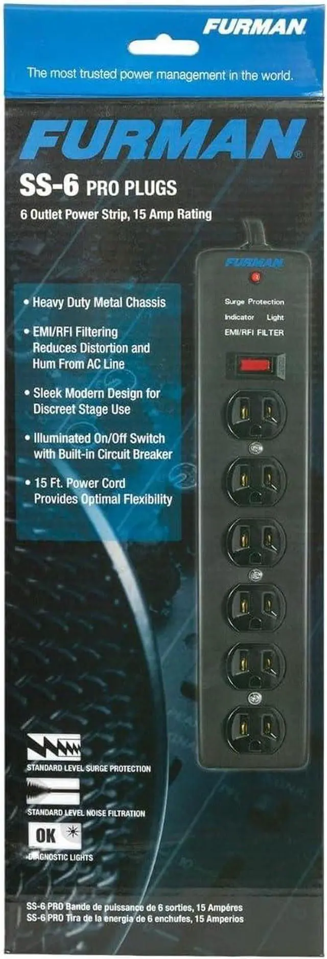 Furman SS-6 6-Outlet Pro Surge Suppressor Strip (SS6d1)