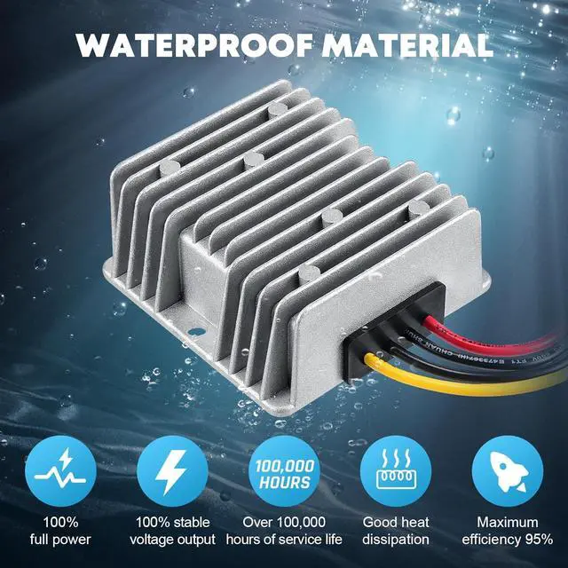UP TO 96% POWER CONVERSION EFFICIENCY: 24 to 12 volt step down converter adapted with synchronization rectification technology and built-in smart chip, high conversion efficiency and stability.
