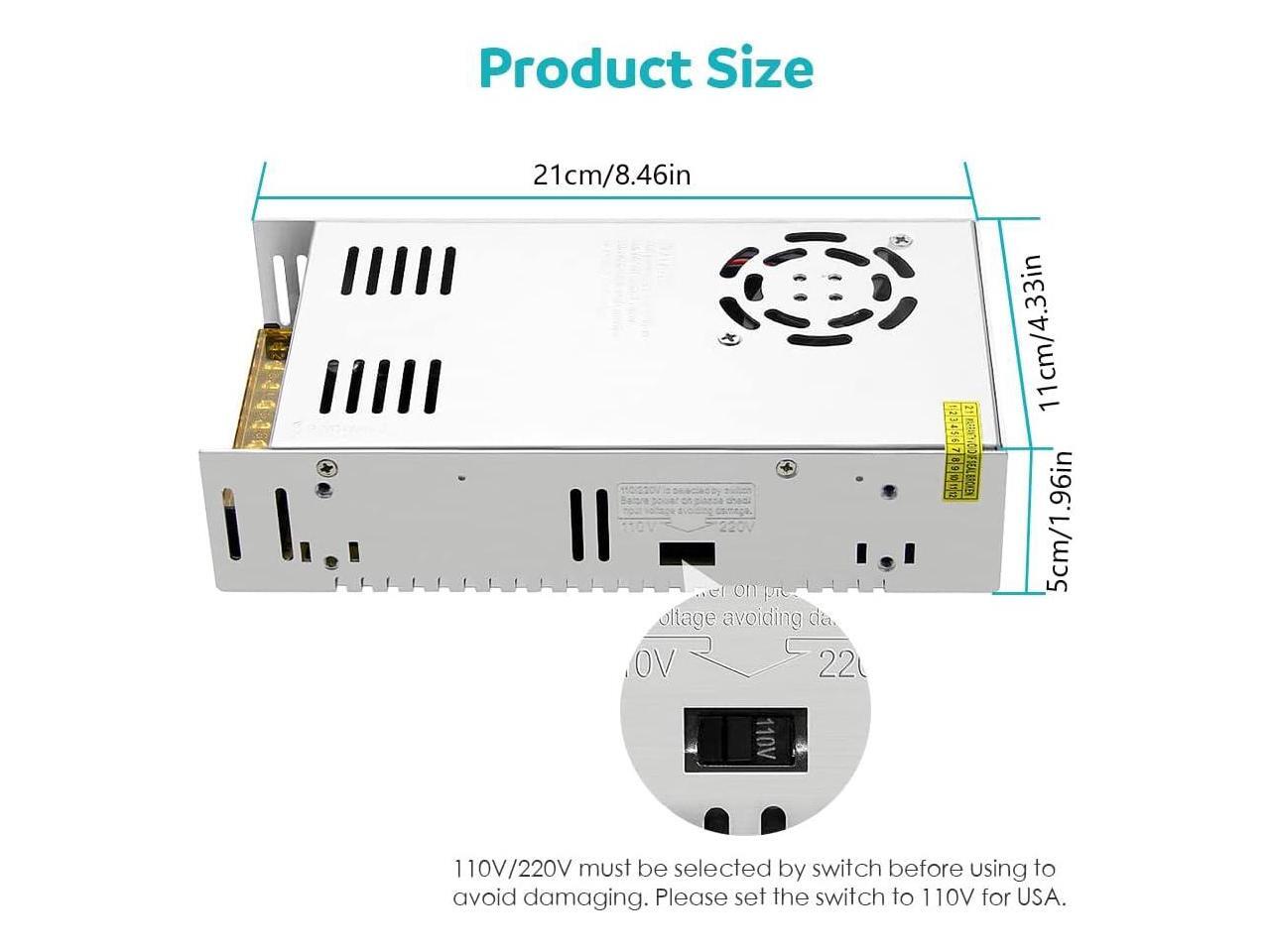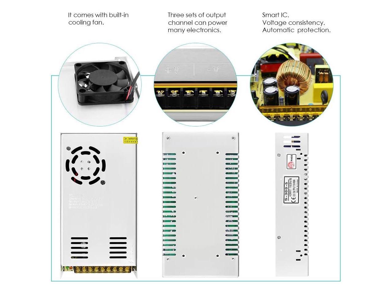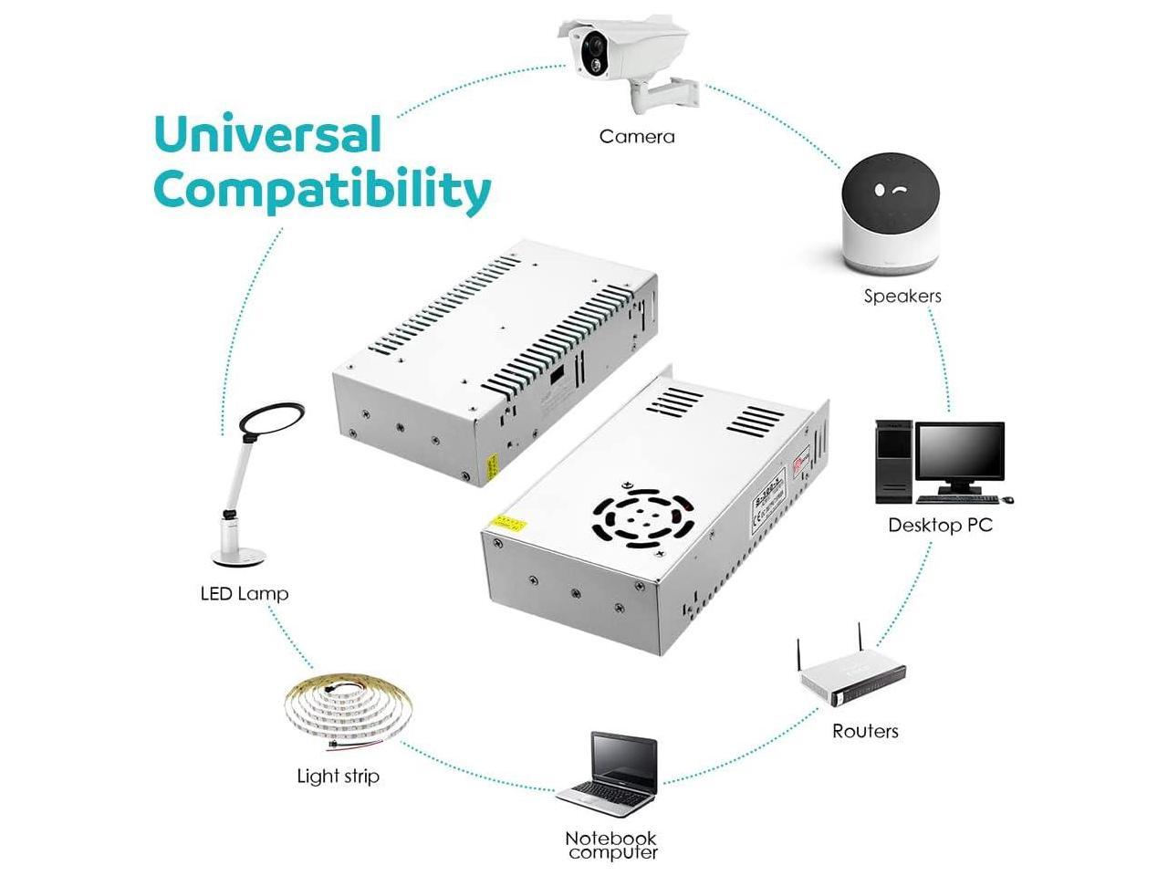 - Enough 350W output power and 5V stable output voltage will protect your electronic products from destruction, and it comes with cooling fan and many holes on the metal case, which makes heat dissipation more efficient