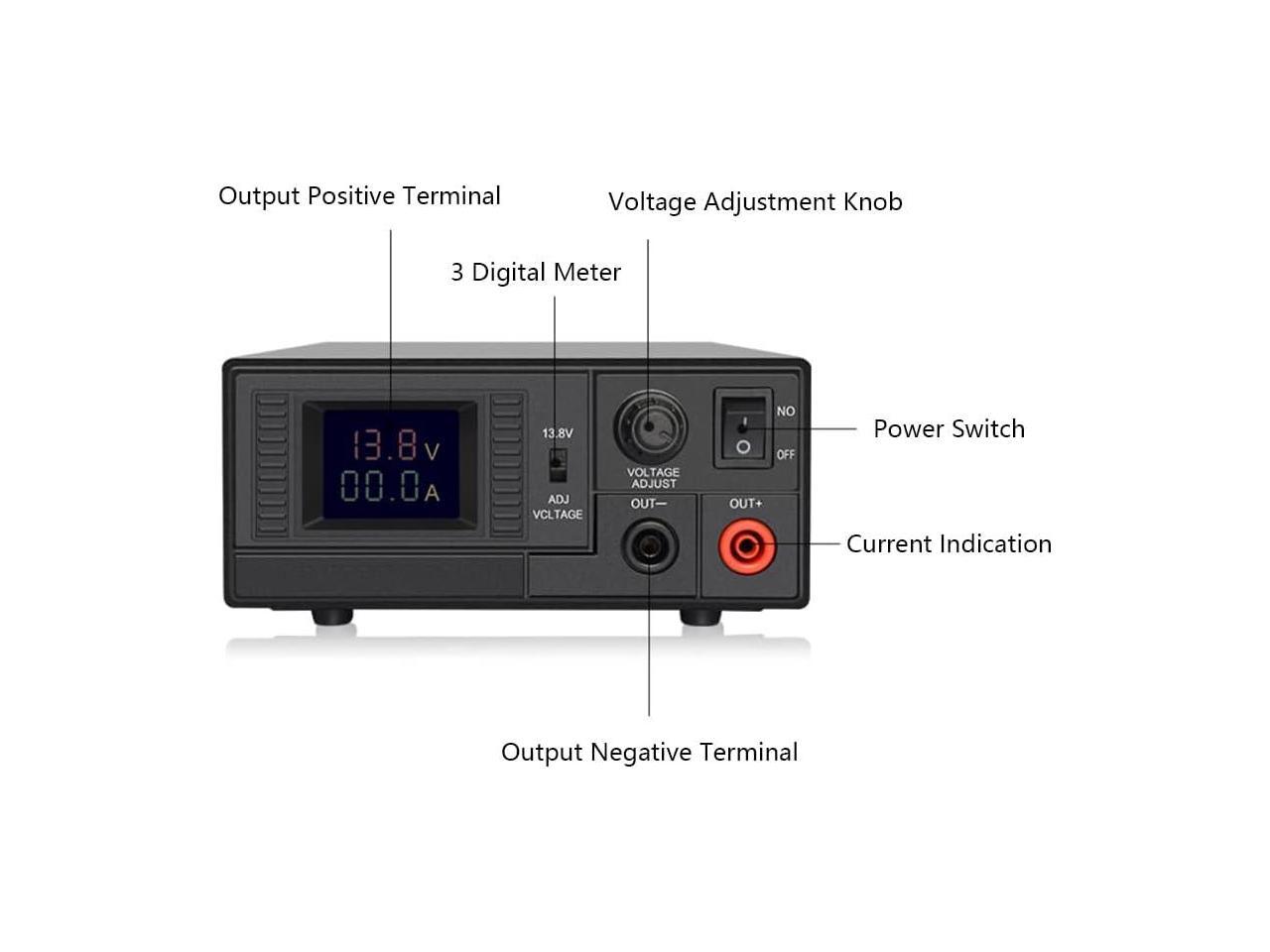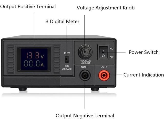 Switching Power Supply DWC30WIN, Universal Compact 13.8 Volt DC 110V AC Home Lab AC-DC Converter Power Supply for CB/HAM Radio Mobile, Output Current 30A(Max), Liquid-Crystal Display