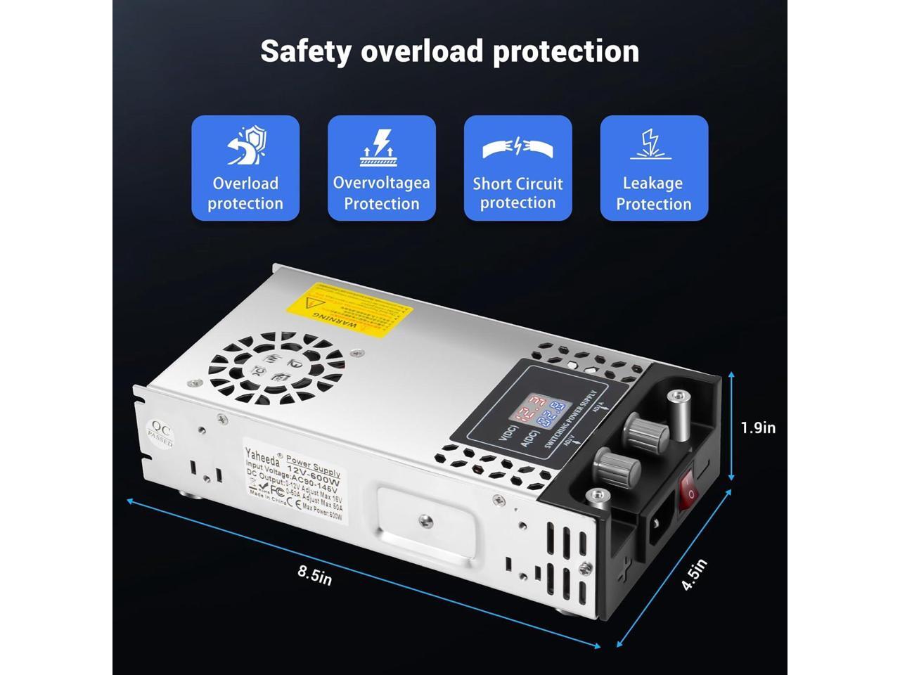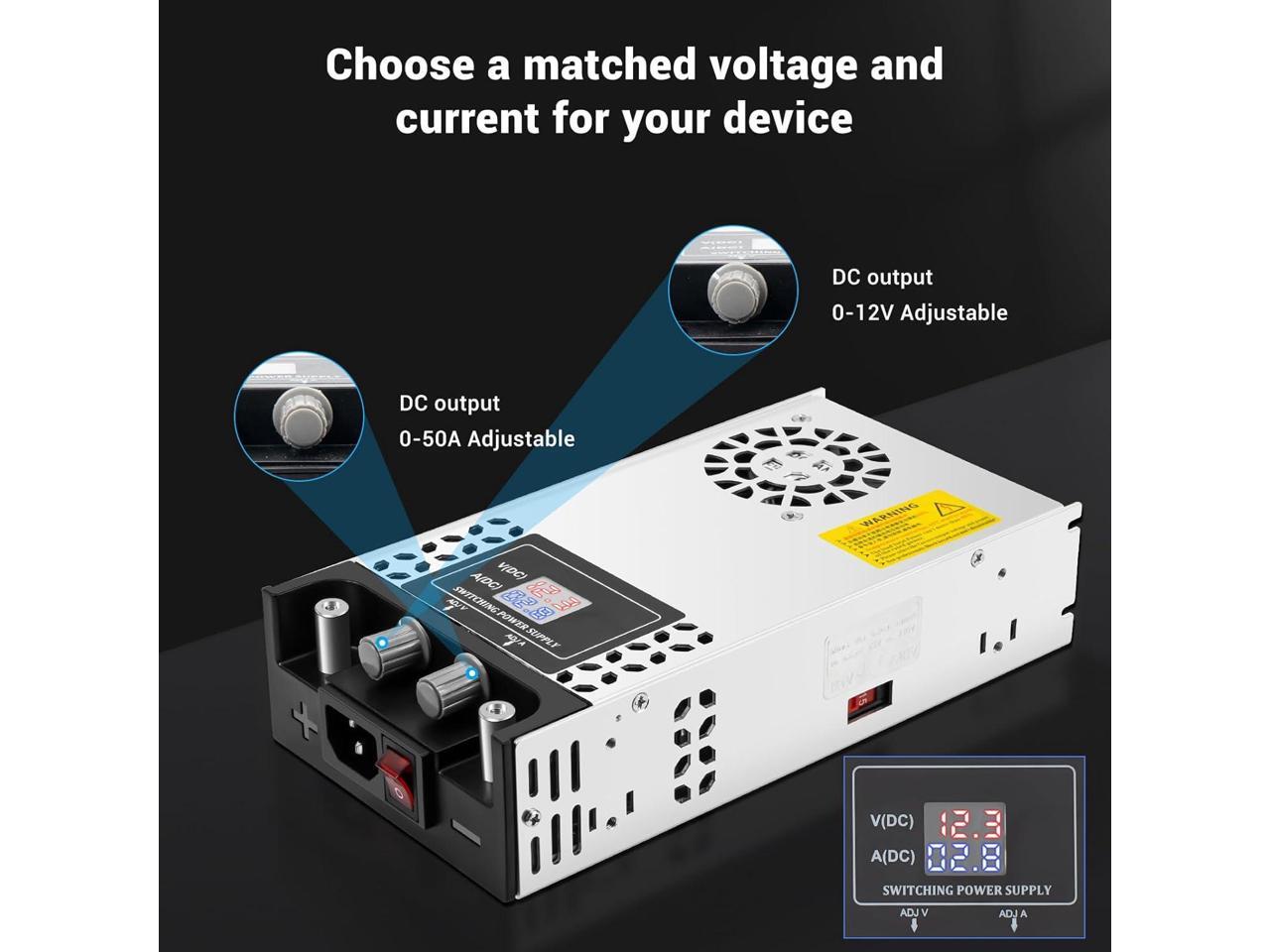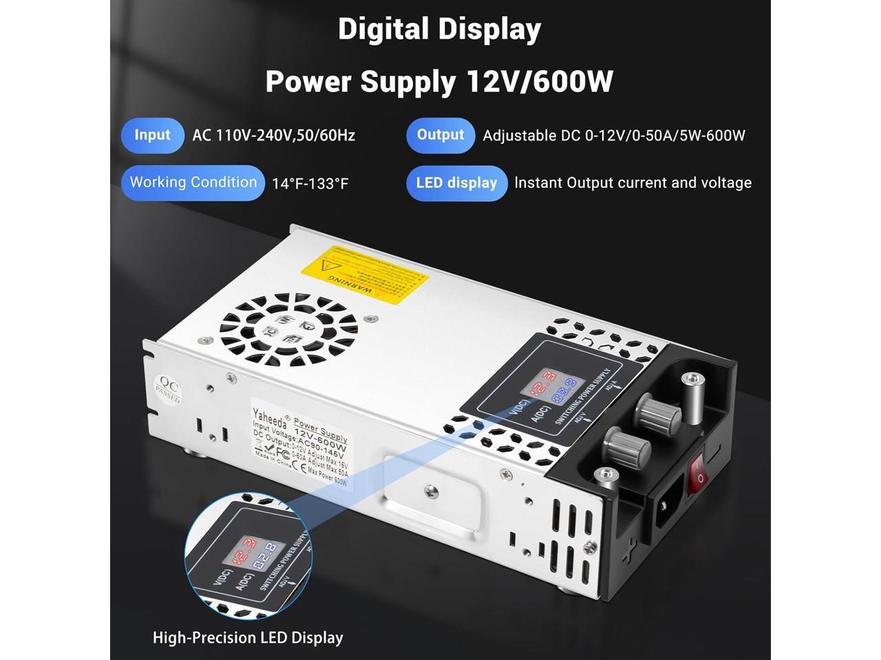 Adjustable Power Supply with LED Display - AC110V/220V to DC 0-12V Converter 600W 50A Power Supply