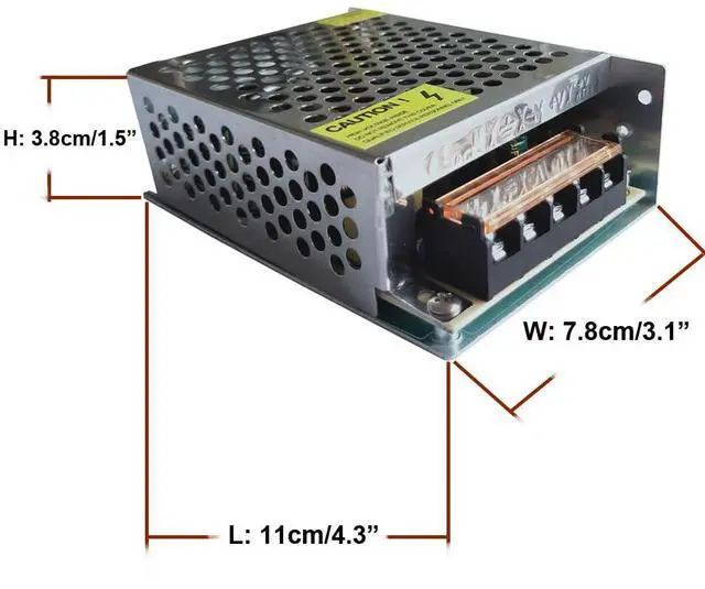 Package included 1 x 5V 10A 50W Regulated Switching Power Supply Be sure to confirm the input and output voltage first: 1. You can choose the proper input voltage (110V/220V) by a black switch to avoid damaging. Left is: AC 110V, Right is AC 220V. Please set the switch to 110V for USA/CA. 2. The 5V 10A output voltage can be regulated by ±15%, which greatly expand its application range. There is a yellow botton on the right corner. Turn the yellow button clockwise, the output voltage could be fine tuning. 3. The max use of power should be no more than 80% of the full loads, otherwise,the power supply's spanlife will be shortened. We recommend you to use this 5V 10A 50W power supply to power devices less than 8A 40W. 4. This Unit "DOES NOT" comes with installation instruction, wiring cable, on/off switch, or screws. Professional installation of qualified electrician is highly recommended. 5. High Voltage inside, do not remove the cover. Dust the switcher out every 2 or 3 months if necessary. 6. Connection instruction: L/N: AC power input(L: Live wire,N: Negative wire) ; +V: DC power output+; -V: DC power output- ; +V ADJ: Adjust the output voltage (15%). Over Voltage Protection, Overload ProtectionOver Current Protection, Over Temperature Protection Short Circuit Protection *Why does the LED power supply stop working Maybe the overcurrent protective switch (in the power supply) disconnect. Please unplug your AC cable, it's important! Then wait about 10 minutes. It will be auto recovered. Then reconnected it, it will work well.