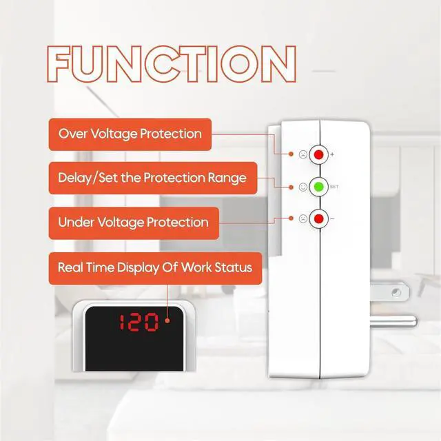 Clear LED Digital Display Upgraded LED screen shows real-time voltage and delay. LOP indicates under-voltage protection, HIP indicates over-voltage protection, making appliance status clear at a glance.