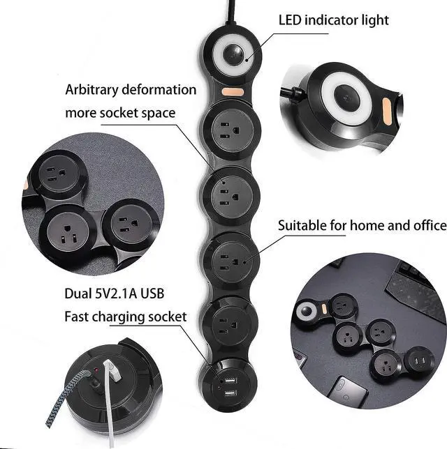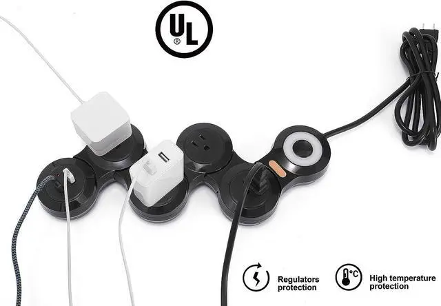 Larger space5 Outlet space and 2 5V 2.1A USB fast charging slots, 6 FT 1.8M power cord and larger outlet space, you can for more options.
