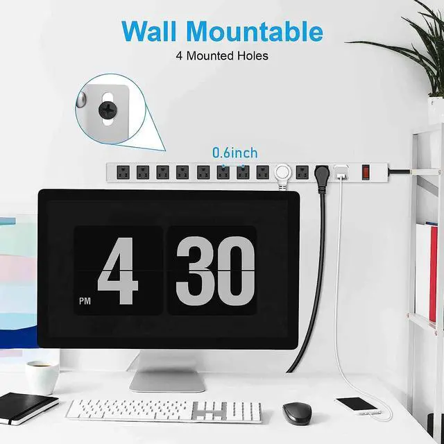 Wall Mount Power Strip: Metal mountable power bar provide 4 screws, wall mount strips to be securely installed in various applications, industrial, workshops, enclosed garages, shop, offices and workbenches, etc.