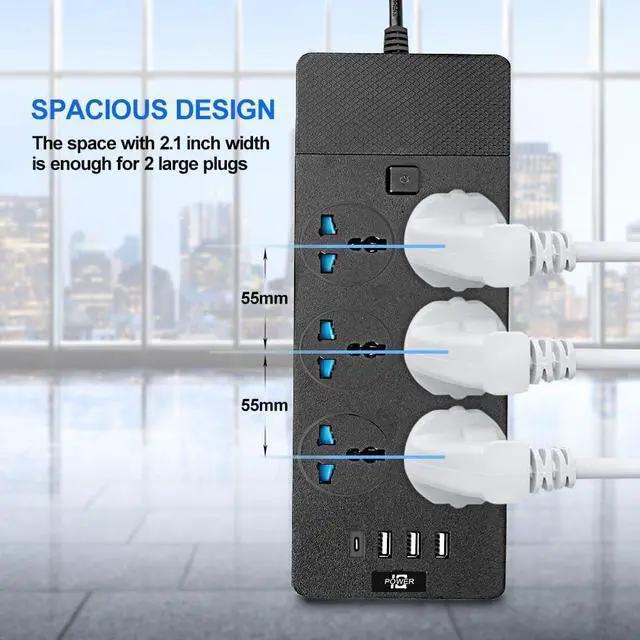 MULTI-CHARGING EXTENSION LEAD: This power strip includes 6 widely spaced AC outlets, 3 USB and 1 Type C port. With 3000W of power, you can use it to charge for your cellphone, tablet, laptop and lamp simultaneously.