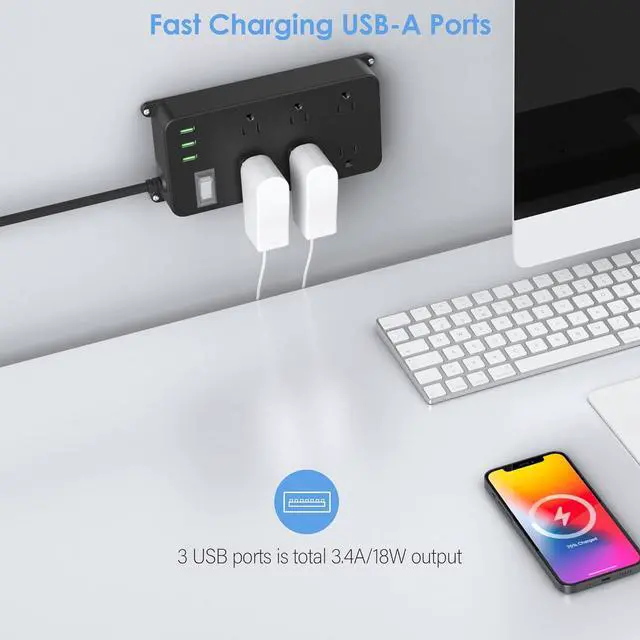 Fast & Smart Charging USB Outlet: Outdoor power strip weatherproof 3 USB charging ports total 3.4A (18W total max output).