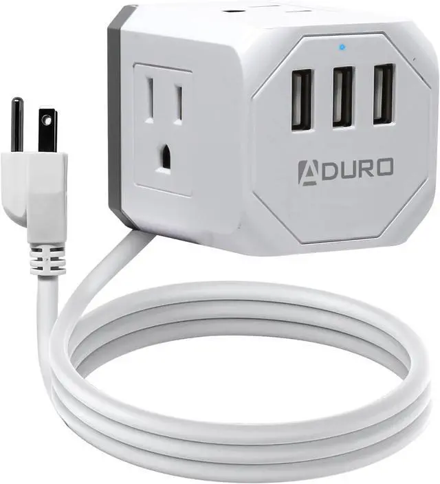 5ft extension heavy-duty cord (15A, 1875W, 125VAC) is ETL listed in the US and Canada, Compact size plug-in USB outlet plug adapter splitter; ideal for smartphones, tablets, laptops, and other electronic accessories