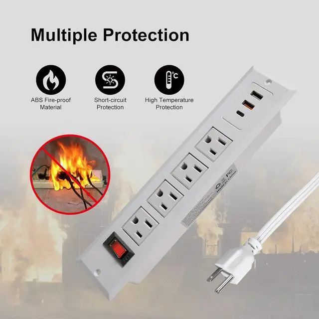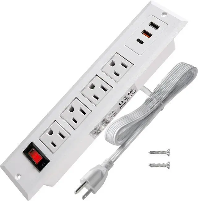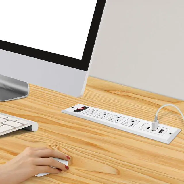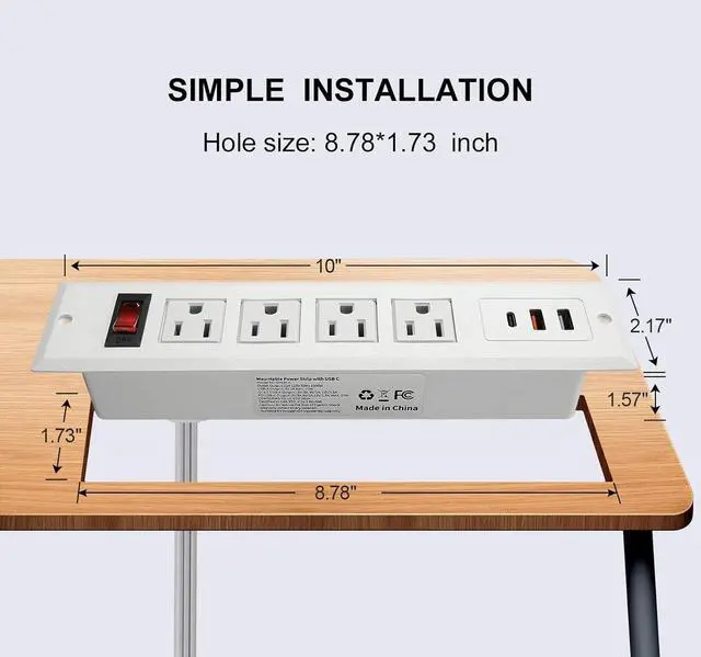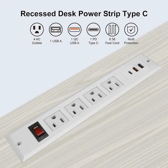 [RECESSED POWER STRIP] mounted into desk table cabinet or sofa, save your space get rid of power cord dragged and hang around. Cut a hole size 8.78 * 1.73 (L*W) on the furniture surface, insert the power strip and screw it.