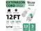 : This 12FT White extension cord features a lighted end that indicates when power is active. 12 gauge extension cord, 3-prong grounded plug, and supports 15 amps, 125 volts, and 1875 watts. It operates effectively within a Temperature Range of -40°F to +140°F.