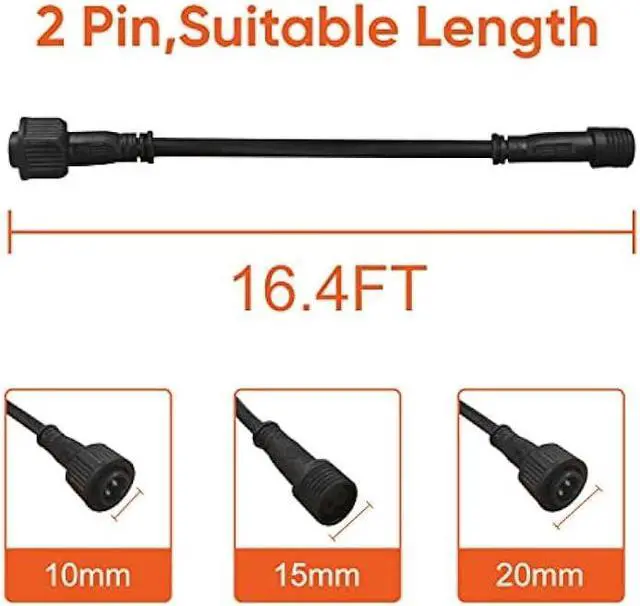 Safe and Energy Saving - No electricity cost, entirely solar powered and wireless installation, which can save your cost. Length 16.4 ft, 2 Pin plug, suitable for DC, and other low-voltage DC environments.