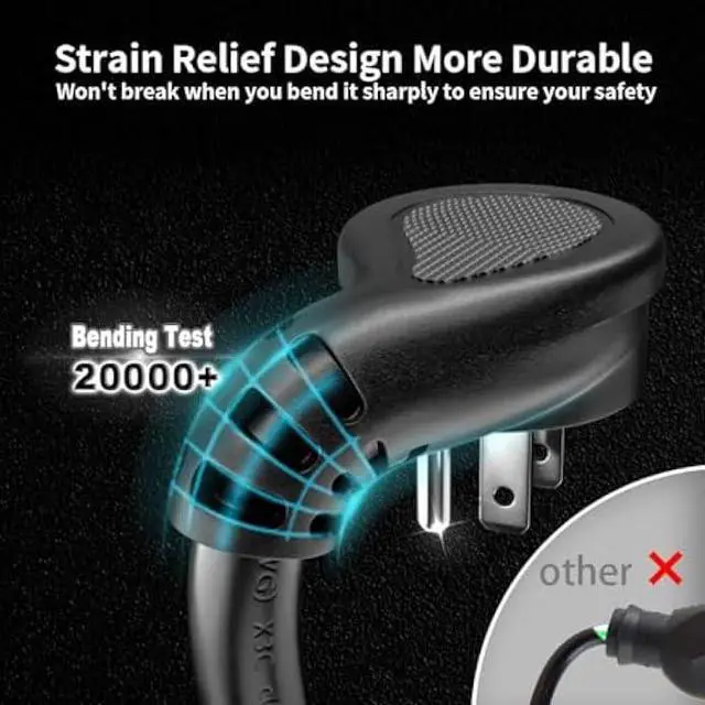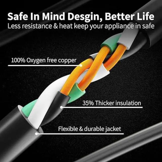 High Flexible & Durable: High flexible Vinyl 3 prong extension cord and the plug end has a long durable strain relief design; which passes 65000 times great angle bending without break; extending the service life; Each Power Extension Cord passes the 2500V high Voltage test before shipment keep safety in mind