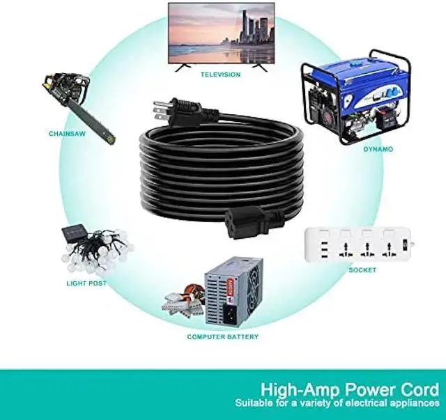 6 Feet adapter plug end design for more equipment needs, SJTW 12/3, 3-prong 15AMP NEMA 5-15P male, -40 to 140F, 20 amp, 110V-240V, UL listed. well made and quality.